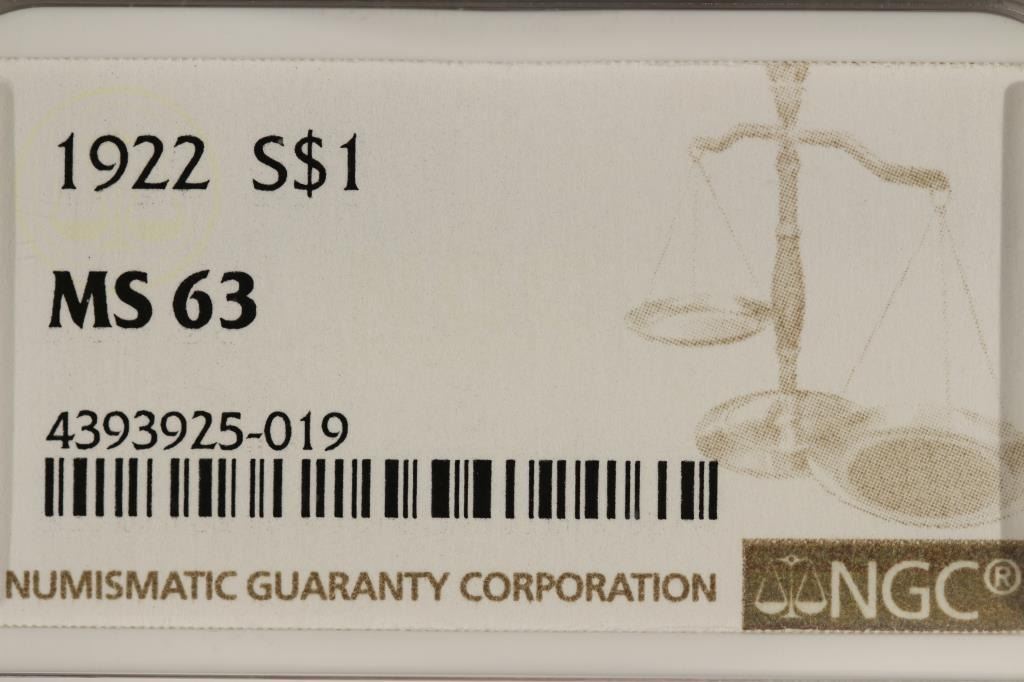 1922 PEACE SILVER DOLLAR NGC MS63