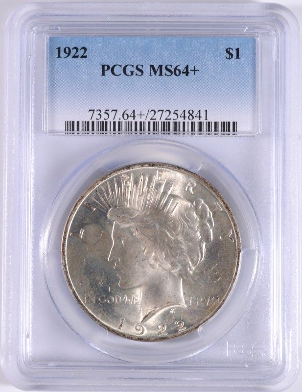 1922 PEACE SILVER DOLLAR, PCGS MS-64+  LOOKS 65