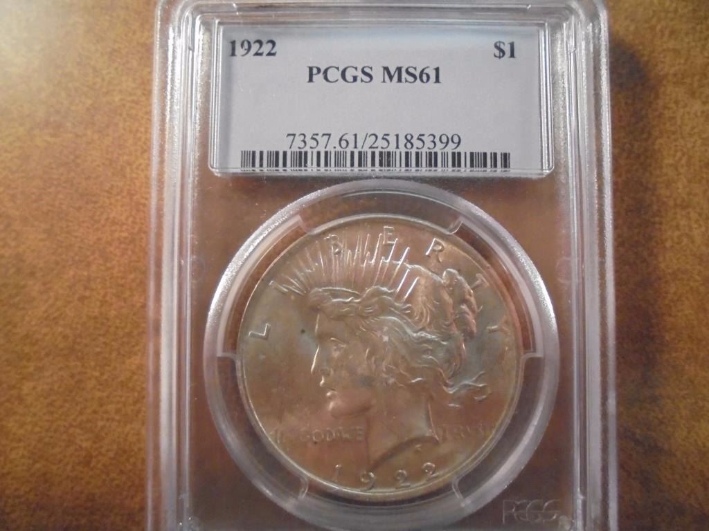 1922 PEACE SILVER DOLLAR PCGS MS61