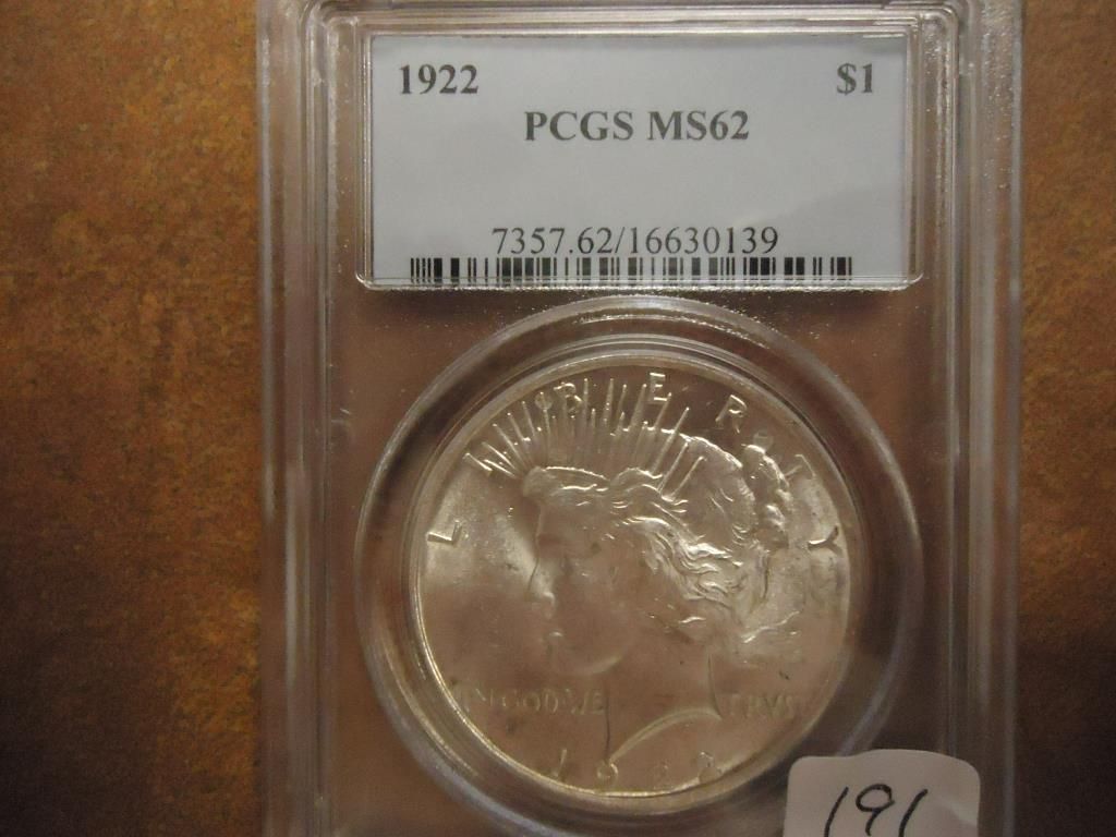 1922 PEACE SILVER DOLLAR PCGS MS62