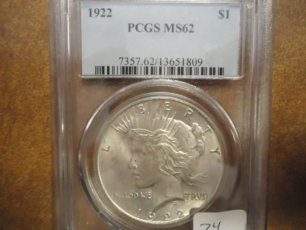 1922 PEACE SILVER DOLLAR PCGS MS62