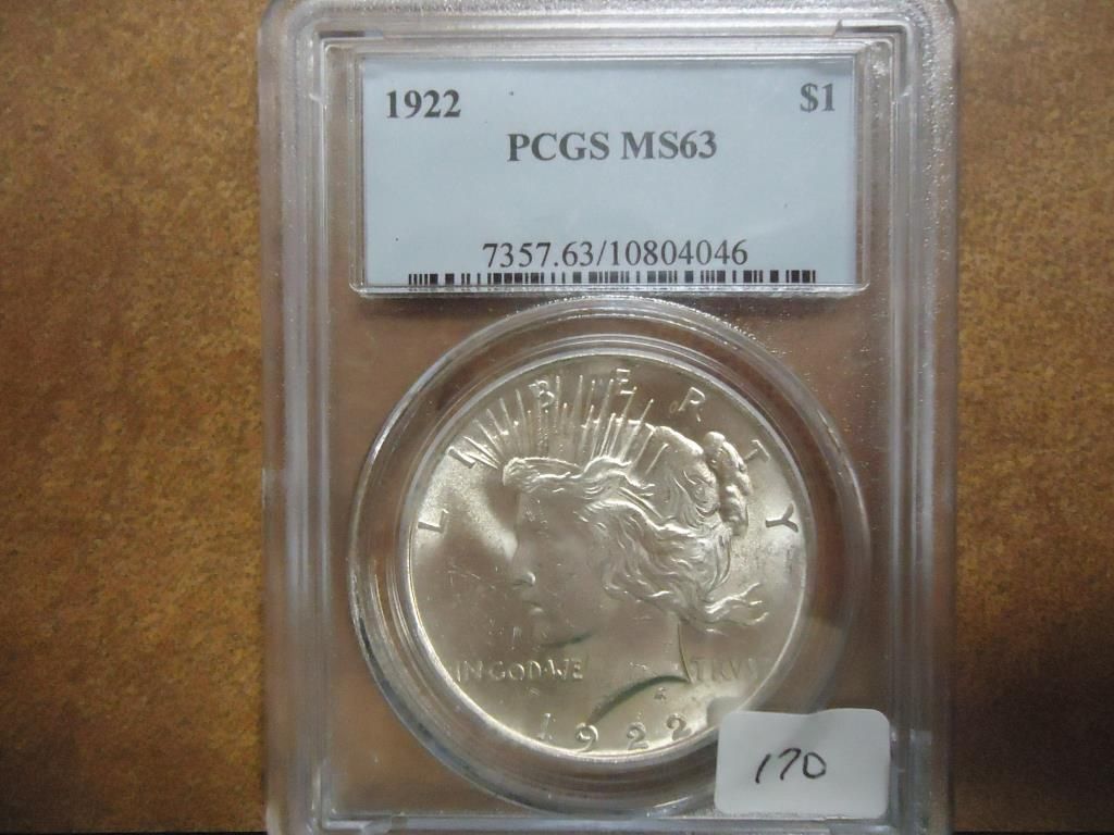 1922 PEACE SILVER DOLLAR PCGS MS63