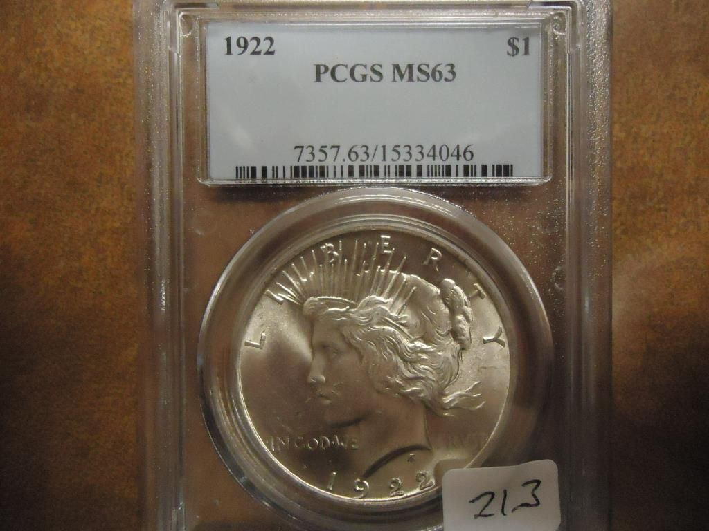 1922 PEACE SILVER DOLLAR PCGS MS63