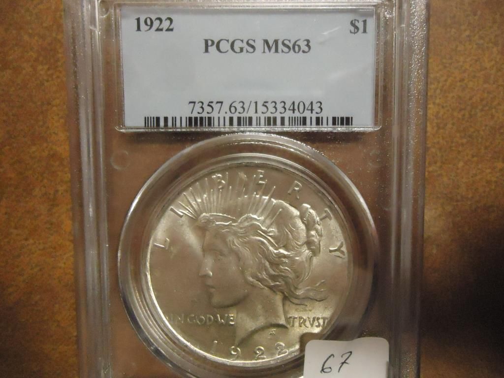 1922 PEACE SILVER DOLLAR PCGS MS63