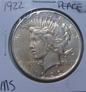 1922 PEACE SILVER DOLLAR *RARE MS HIGH GRADE*!! ***Coin, Currency & All Items Listed in this auction - Grades, Conditions and Values are not Safe Deposit Coins LLC Responsibilty. Grades, Condition and Values are determined by Consigner(s) & Buyers ONLY***