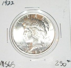 1922 PEACE SILVER DOLLAR RED BOOK VALUE IS $250.00+ *RARE MS-65 HIGH GRADE KEY DATE NICE COIN*!! SILVER DOLLAR CAME OUT OF SAFE!! ***Coin, Currency & All Items Listed in this auction - Grades, Conditions and Values are not Safe Deposit Coins LLC Responsibilty. Grades, Condition and Values are determined by Consigner(s) & Buyers ONLY