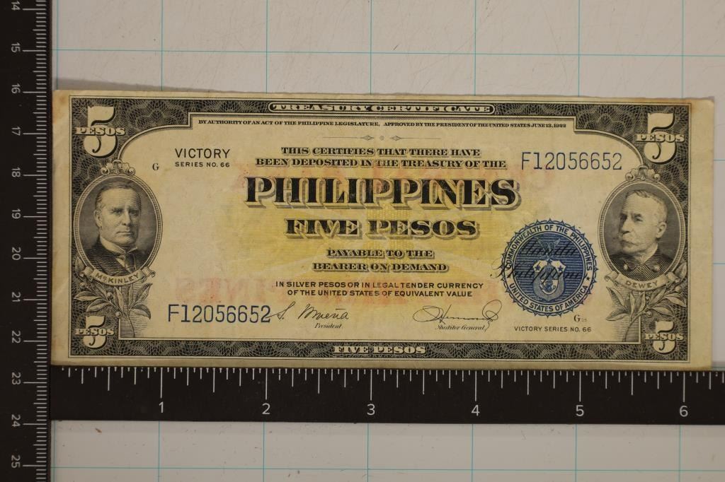 SERIES 66 WITH CENTRAL BANK OF THE PHILIPPINES VICTORY STAMP ON THE REVERSE. HAS STAPLE HOLE ON RIGHT HAND SIDE OBVERSE
