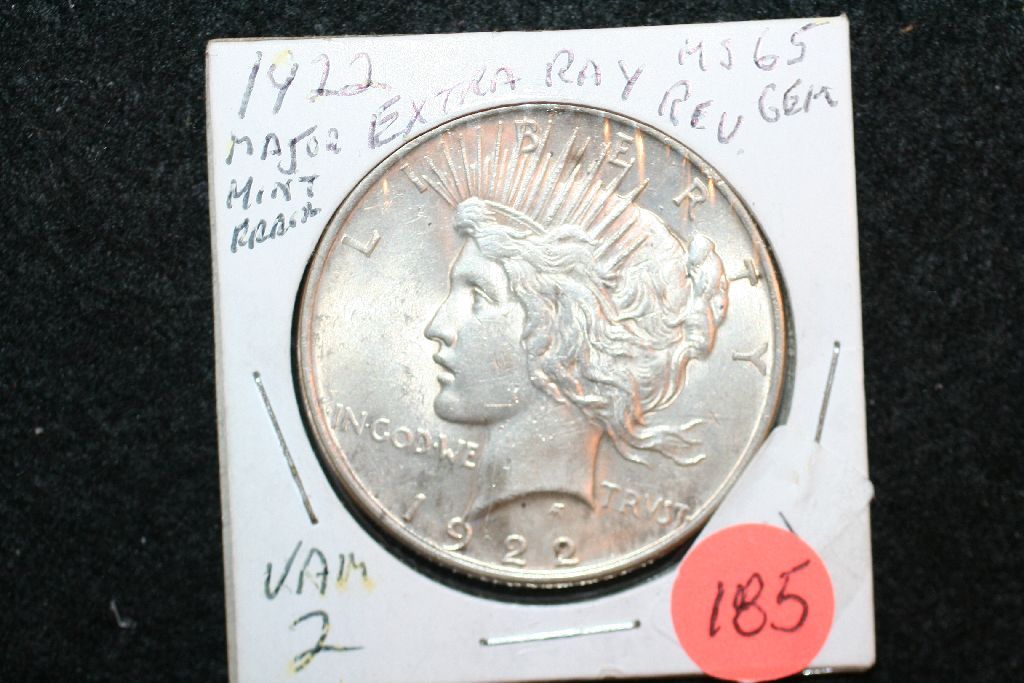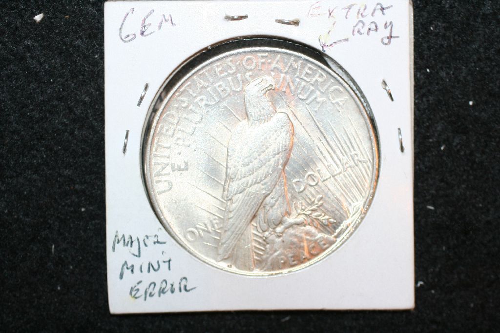 1922 Peace $1; Gem MS65; Extra Ray Reverse-Major Mint Error