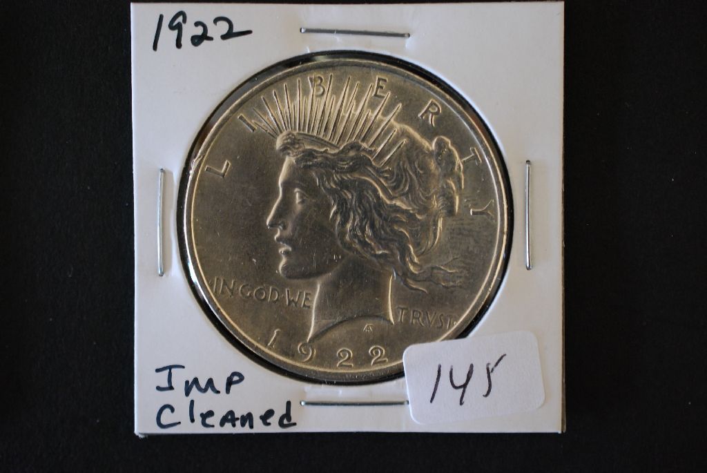 1922 Peace $1; Imp. Cleaned; EST. $25-40