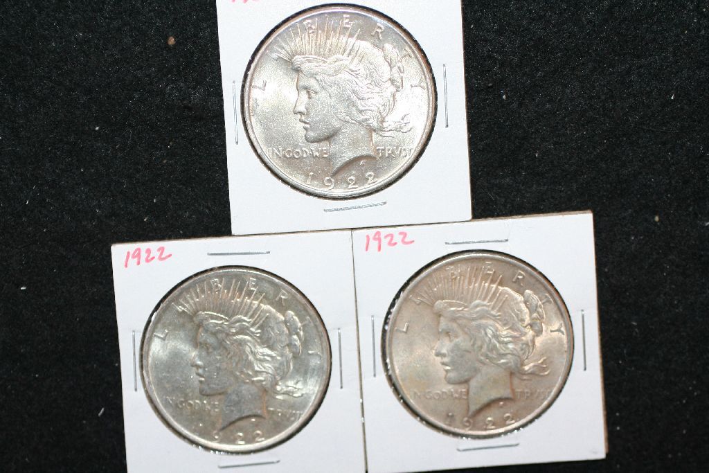 1922 Peace $1; Lot of 3