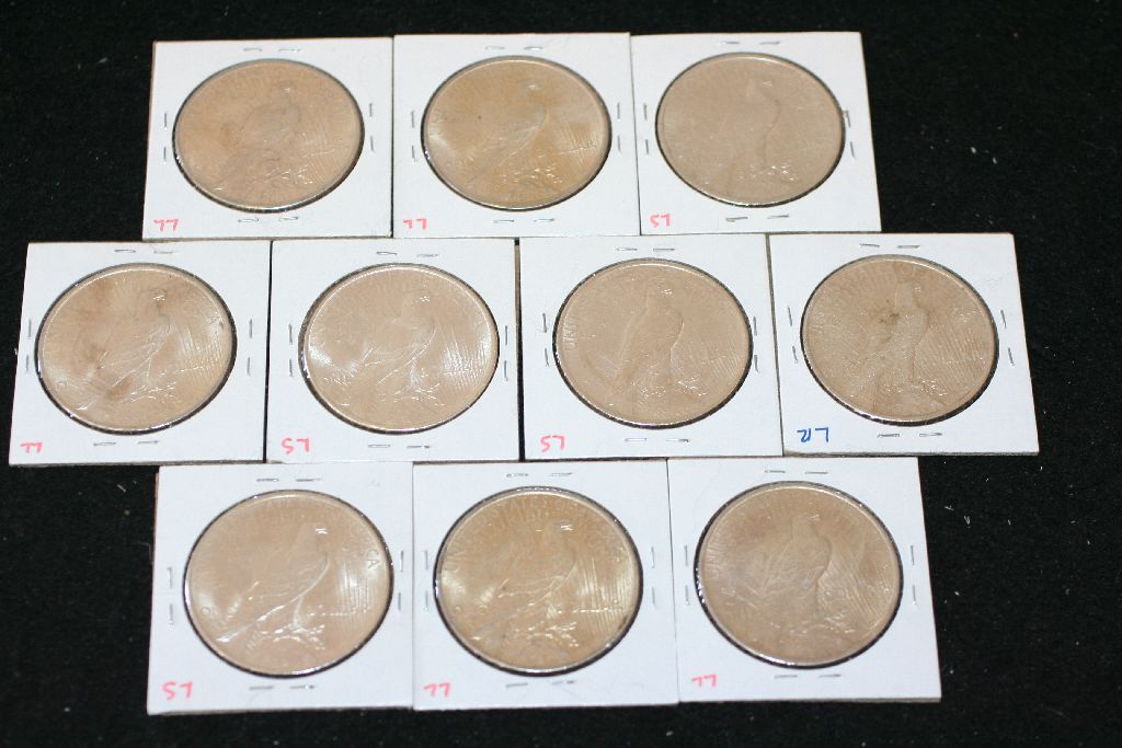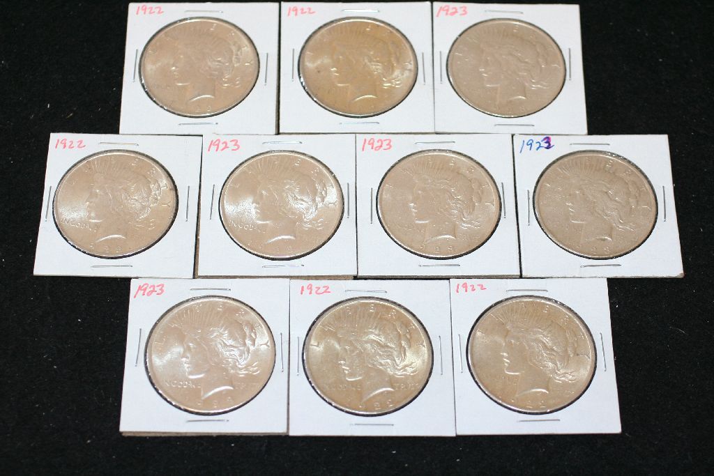 1922 Peace $1; Lot of 5 & 1923 Peace $1; Lot of 5; Total Lot of 10
