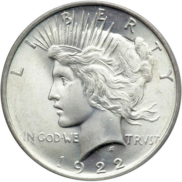 1922. PCGS graded MS-66. A frosty white gem with an almost perfect cheek. Pop 564; 24 finer (PCGS # 7357) .