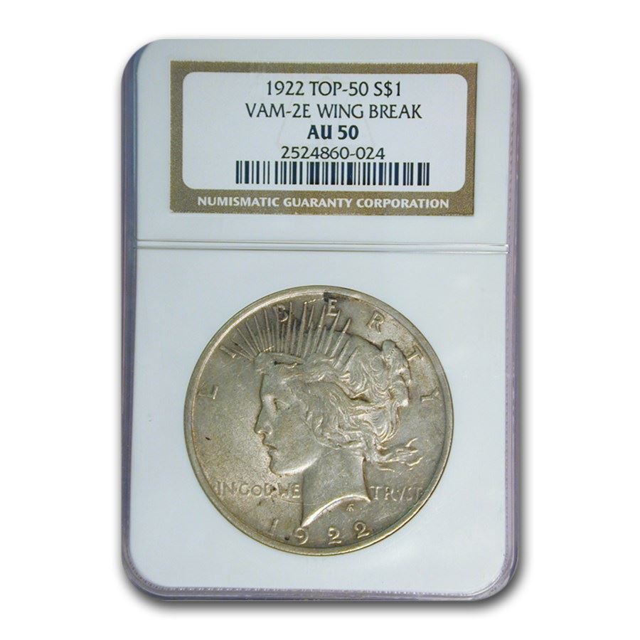 1922 Peace Dollar AU-50 NGC (VAM-2E Wing Break, Top-50)