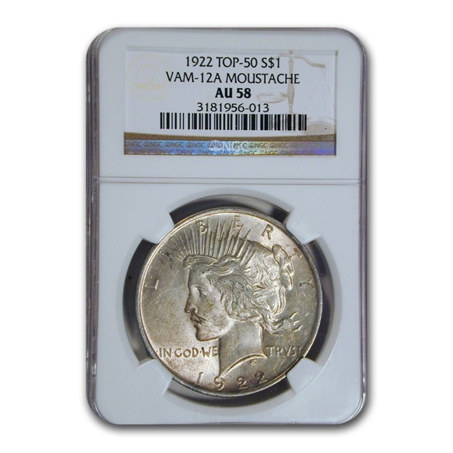 1922 Peace Dollar AU-58 NGC (VAM-12A Moustache, Top-50)