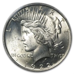 1922 Peace Dollar MS-63 PCGS **|**|** Year: 1922 ; Mint Mark: MS-63 ; Grade: P - Philadelphia ; Denomination: 1 ; MSRP: $100