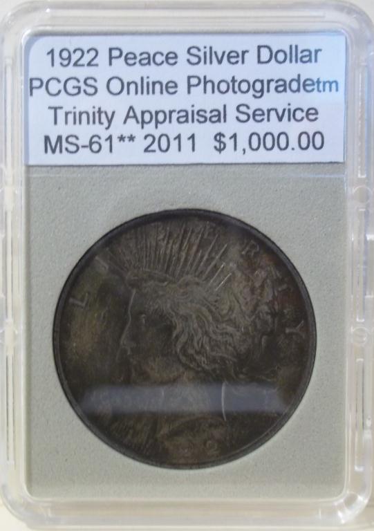 EARLY RAINBOW & TONE!!! PCGS Online Photograde(tm) MS-61 Appraised at $1,000.00 by a Certified G.I.A. Appraiser from Trinity Appraisal Service, Control# F035362. INCLUDES APPRAISAL CERTIFICATE