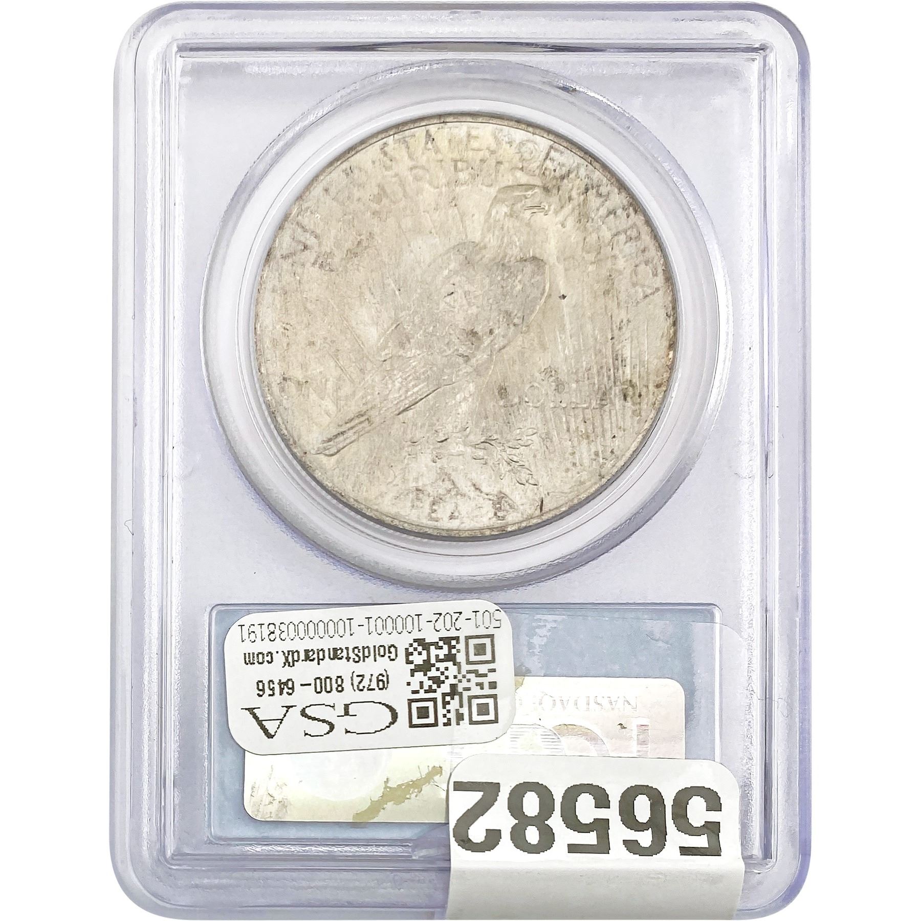 COINS AND CURRENCY LISTED IN GSA’S CATALOG AS GRADED AND ENCAPSULATED BY PCGS, NGC, ANACS, ICG, PCGS CURRENCY, PMG, PCGS BANKNOTE GRADING, CMC OR ANY OTHER THIRD-PARTY GRADING SERVICE ARE LIKEWISE SOLD “AS-IS” EXCEPT AS EXPRESSLY SET FORTH HEREIN. ALL THIRD-PARTY GRADING SERVICE GUARANTEES, INCLUDING AUTHENTICITY, ARE THE SOLE RESPONSIBILITY OF THE THIRD-PARTY GRADING SERVICE AND NOT WARRANTIES OR GUARANTEES OF GSA. BIDDERS SHOULD CONTACT THESE THIRD-PARTY GRADING SERVICES DIRECTLY WITH RESPECT TO ANY CLAIMS OR QUESTIONS THEY MAY HAVE CONCERNING THEIR GUARANTEES AND WARRANTIES. BIDDERS ACKNOWLEDGE AND AGREE THAT AUCTIONEER IS NOT BOUND BY OR LIABLE FOR ANY OPINION OR CERTIFICATION BY ANY THIRD-PARTY GRADING SERVICE. REMOVAL OF A PRODUCT FROM ITS PROTECTIVE CASING OR HOLDER OR ALTERATION OF ANY COIN HOLDER WAIVES ALL RIGHTS CONCERNING THE PRODUCT CONTAINED THEREIN.