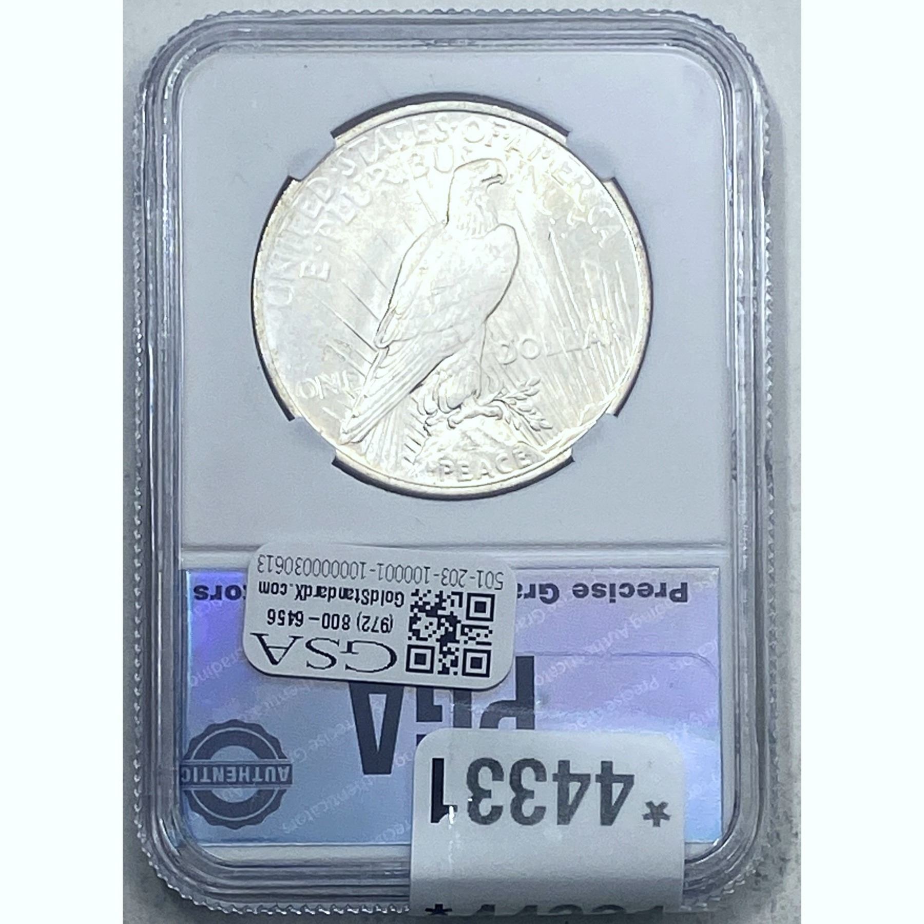 l. All non-certified coins and currency are guaranteed genuine, but are not guaranteed as to grade, since grading is a matter of opinion, an art and not a science, and therefore the description rendered by GSA or any third-party grading service may not agree with the opinion of others (including trained experts), and the same expert may not grade the same item with the same grade at two different times. GSA may, but is not obligated to, express an opinion as to non-certified numismatic items, in GSA’s opinion, or by its employees’ experience and the current interpretation of the American Numismatic Association’s standards as of the date the catalog was prepared. There is no guarantee or warranty expressed or implied that the grading opinions utilized by GSA, if any, will meet the standards of any grading service at any time in the future.