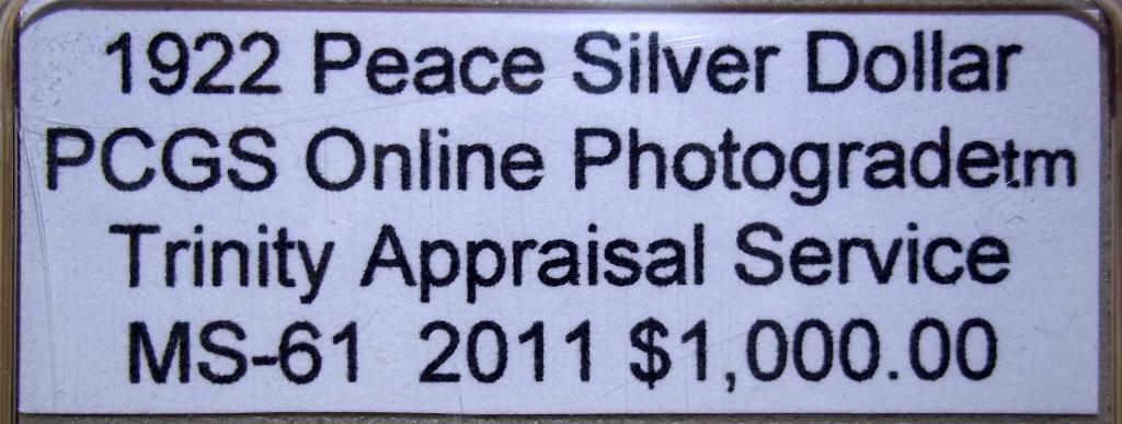 Weak Strike "1",Great Luster. PCGS Online Photograde(tm) MS-61. Appraised at $1,000.00 by a Certified G.I.A. Appraiser from Trinity Appraisal Service, Control# F035369.