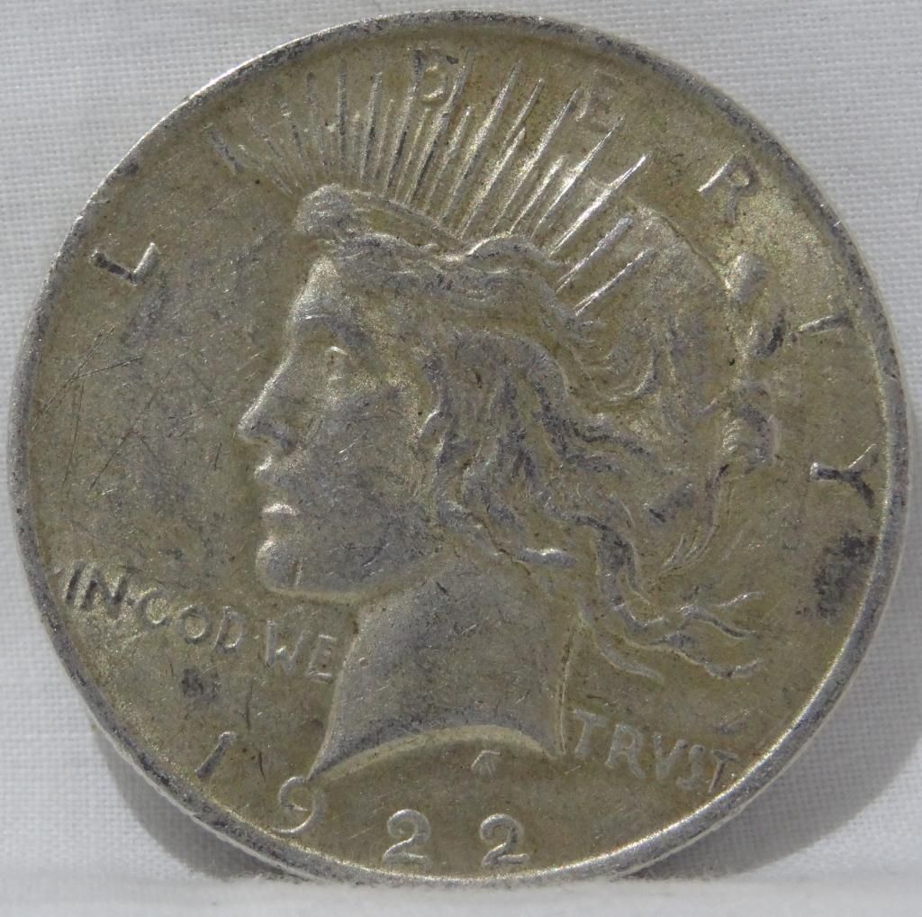 America's last silver dollar struck for circulation, the "Peace" dollar emerged after World War I. The inscription "PEACE" appears on the rock on which the vigilant American Eagle stands guard for freedom, in the brilliant dawn of a new era. On the obverse is an ardent personification of Liberty, partly inspired by the Statue of Liberty. The spires of her crown echo the sunrays on the opposite side. This early 1922 Philadelphia Mint issue introduced the modified-relief engravings that became the standard for the series, which ended in 1935.This is a Beautiful Coin from a great collection!!