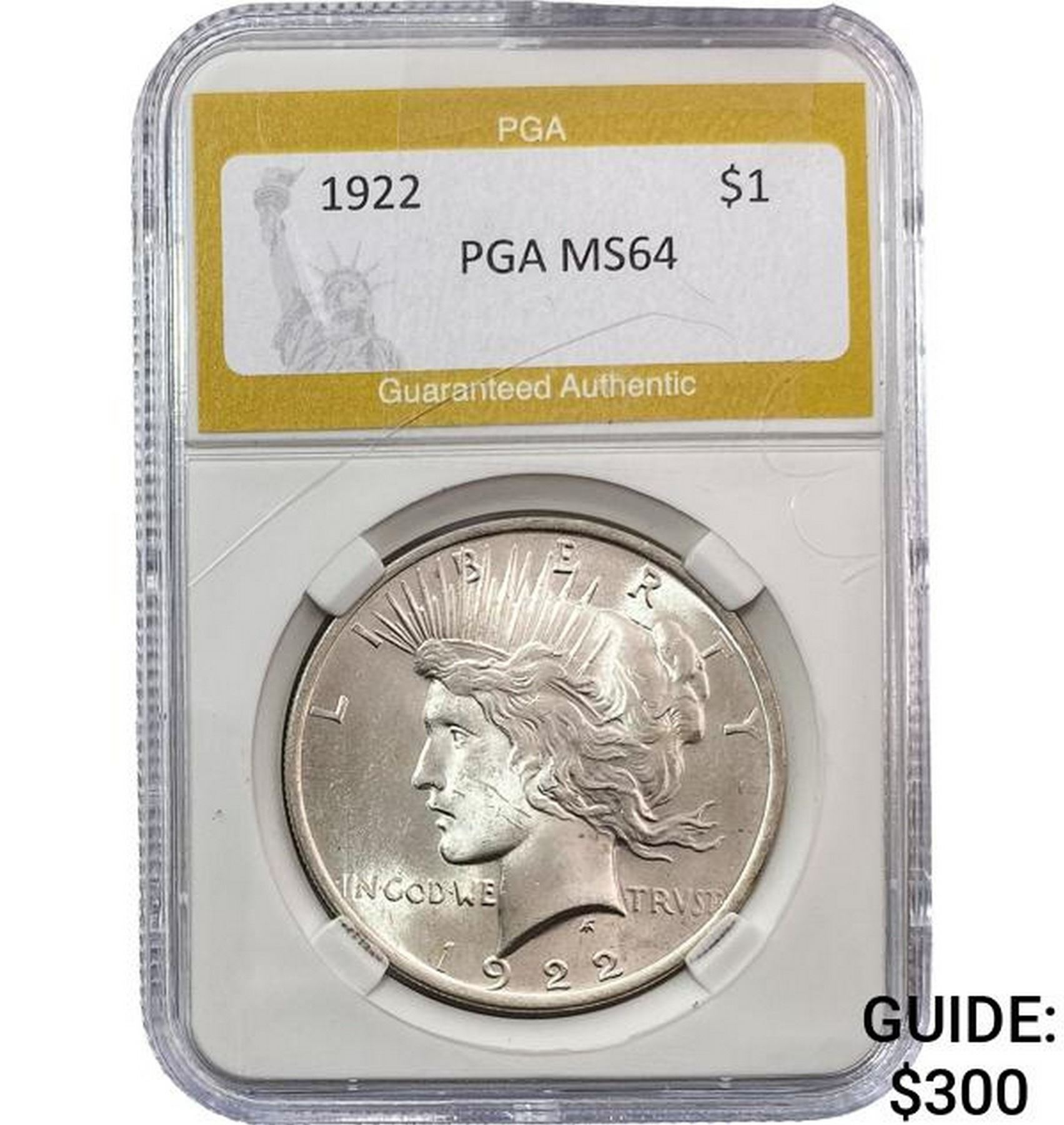 COINS AND CURRENCY LISTED IN GSA’S CATALOG AS GRADED AND ENCAPSULATED BY PCGS, NGC, ANACS, ICG, PCGS CURRENCY, PMG, PCGS BANKNOTE GRADING, CMC OR ANY OTHER THIRD-PARTY GRADING SERVICE ARE LIKEWISE SOLD “AS-IS” EXCEPT AS EXPRESSLY SET FORTH HEREIN. ALL THIRD-PARTY GRADING SERVICE GUARANTEES, INCLUDING AUTHENTICITY, ARE THE SOLE RESPONSIBILITY OF THE THIRD-PARTY GRADING SERVICE AND NOT WARRANTIES OR GUARANTEES OF GSA. BIDDERS SHOULD CONTACT THESE THIRD-PARTY GRADING SERVICES DIRECTLY WITH RESPECT TO ANY CLAIMS OR QUESTIONS THEY MAY HAVE CONCERNING THEIR GUARANTEES AND WARRANTIES. BIDDERS ACKNOWLEDGE AND AGREE THAT AUCTIONEER IS NOT BOUND BY OR LIABLE FOR ANY OPINION OR CERTIFICATION BY ANY THIRD-PARTY GRADING SERVICE. REMOVAL OF A PRODUCT FROM ITS PROTECTIVE CASING OR HOLDER OR ALTERATION OF ANY COIN HOLDER WAIVES ALL RIGHTS CONCERNING THE PRODUCT CONTAINED THEREIN.