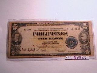 1922 Philippine $5 (Peso) "Victory" Treasury Certificate F12