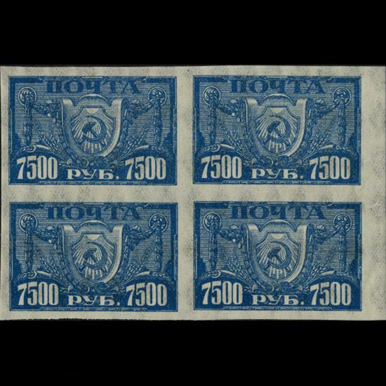 1922 RARE Early Soviet 7500 Ruble Mint Postage Stamp Imperforate Block of 4 (STM-0341)