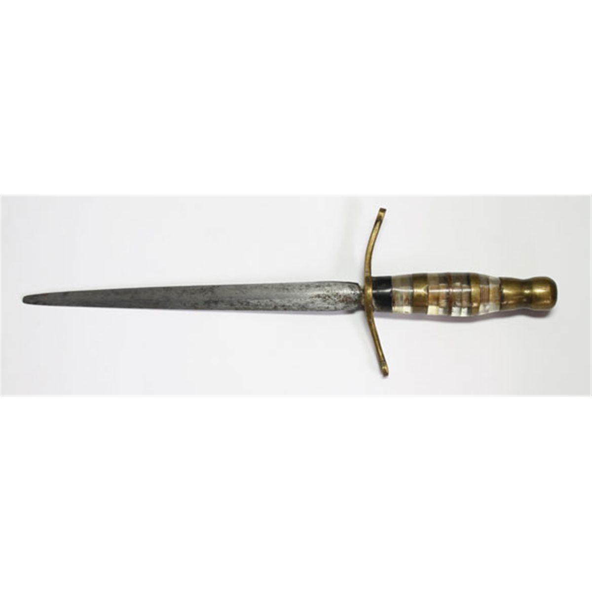 A handmade brass and steel dagger reputed to have been made by Rory O'Connor during his imprisonment in Mountjoy Jail, prior to his execution on 8 December 1922. An extremely interesting piece worthy of further research. With letter of provenance from Ga