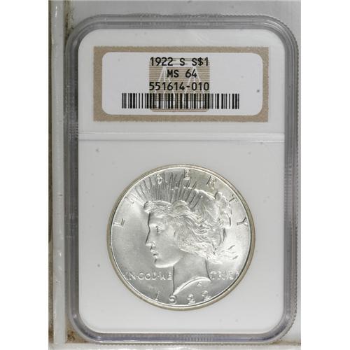 1922-S $1 MS64 NGC. NGC Census: (1371/201). PCGS P