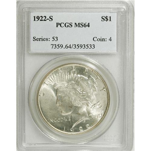 1922-S $1 MS64 PCGS. PCGS Population (1173/215). N