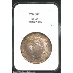1922 S$1 MS66 NGC. Deeply toned with full underlying luster and an above average strike. No signific