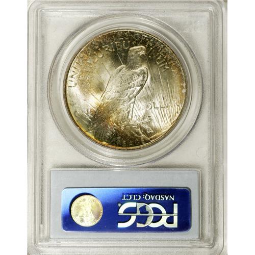 1922 S$1 MS66 PCGS. Delicate peach, lemon-gold, and pa