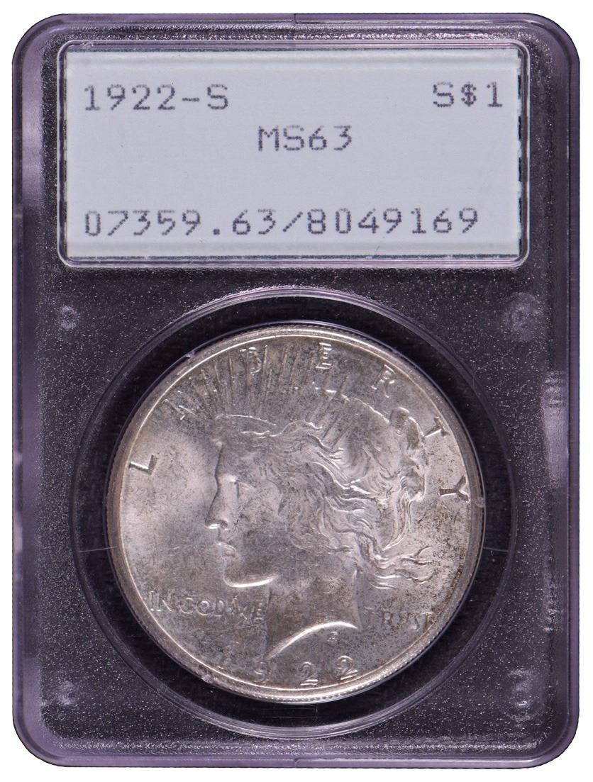 One 1922-S $1 Peace Silver Dollar Coin PCGS MS63.