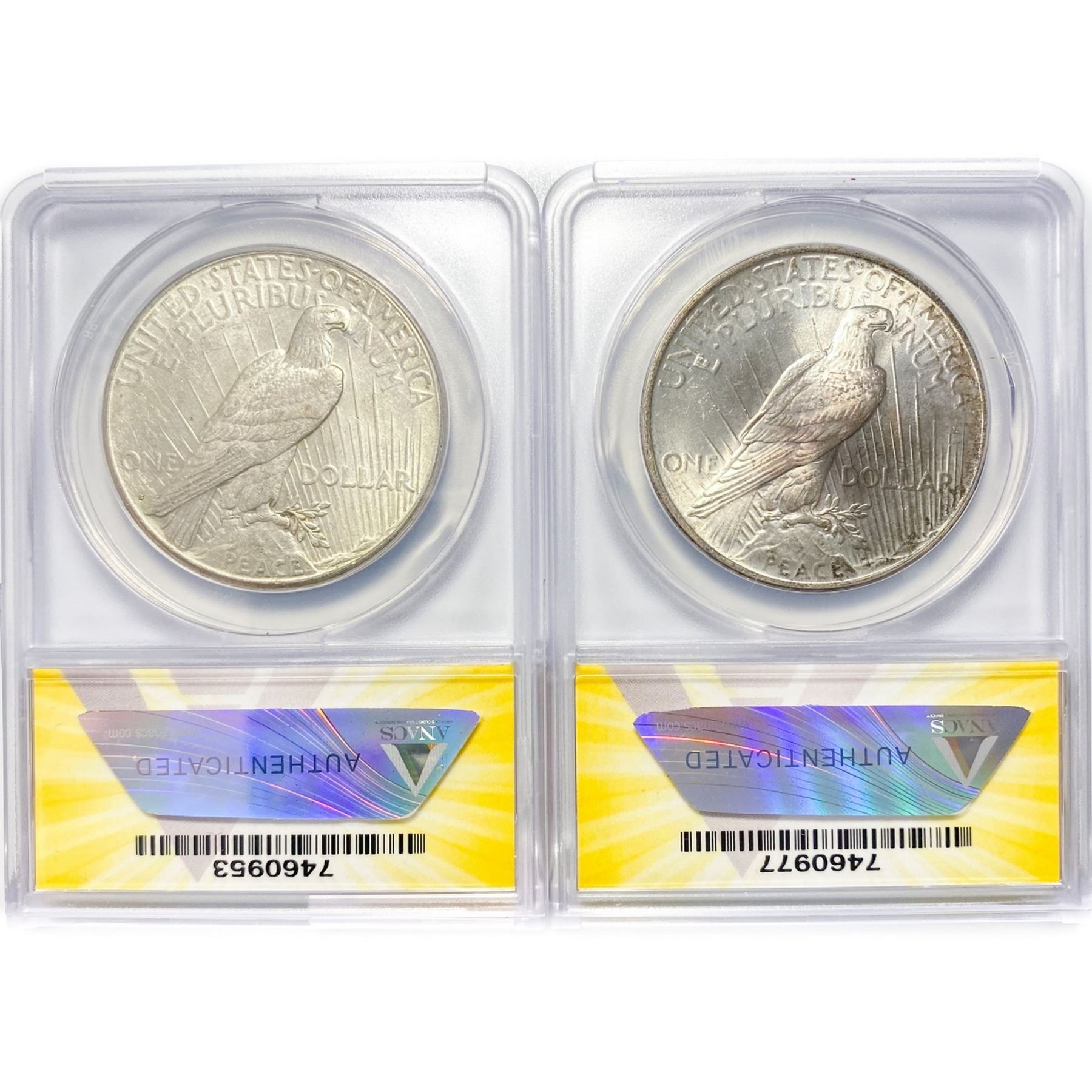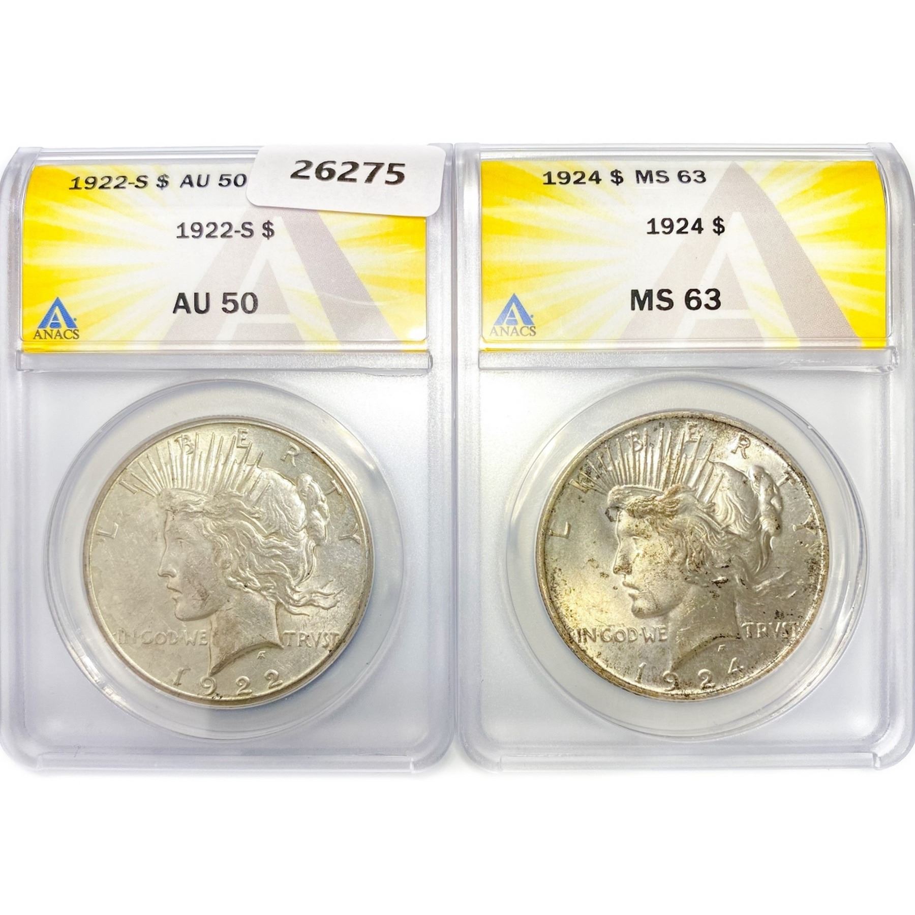 1922-S, 1924 Set (2) Silver Peace Dollar ANACS