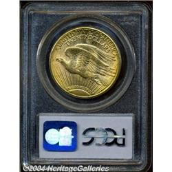 <B>1922-S<$20> MS62 PCGS.</B></I> Boldly struck with sparkling luster, bright orange-gold color, and a seemingly appropriate number of surface blemishes, mostly on the obverse, for the assigned grade level. A slightly scarcer issue in Mint State. <BR><BR><B>Important notice:</B> Heritage usually auctions material at the rate of 200-250 lots per hour. On some occasions eBay Live bid software or the Internet may not be able to keep up with the pace of the auction. We recommend placing a realistic absentee bid now as insurance to avoid disappointment. Occasionally the auctioneer may eliminate or reject an eBay Live bid, and the auctioneer may also reopen a lot after the close of the eBay live bidding (usually because we missed an audience bid), and may reject your bid even if it shows you as the winning bidder. By bidding via eBay Live, you agree that Heritage may award the lot to another bidder at its sole discretion under the circumstances described above or any other reasonable circumstances. Since eBay bids are not shown to us until we open the lot on the floor, we treat those bids just like floor bids. In most cases the floor responds before the eBay bid is presented to us, due to Internet lag time, so for consistency we have made it a policy that floor bids are always considered first over tie eBay live bids. Also please note that all Heritage lots purchased through eBay Live carry a 20% Buyer's Premium. Please make sure you read the Terms and Conditions before you bid. </span></font></tr></table></td></tr></table>