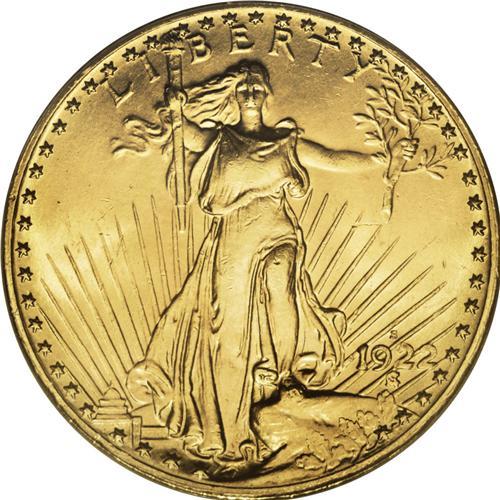 <B>1922-S $20 MS64 PCGS.</B></I> A considerable number of the 2,658,000-piece mintage was melted. The most available grades are in the MS62 to MS64 range. The '22-S becomes scarcer in near-Gem, and elusive in MS65 and finer. Bright luster exudes from peach-gold surfaces that are lightly abraded, and the design elements are sharply impressed.<BR><BR><b>Shipping:</b> Coin/Currency (<a target="_blank" href="http://www.heritageauctions.com/common/shipping.php">view shipping information</a>)