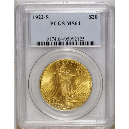 1922-S $20 MS64 PCGS. A considerable number of the 2,6
