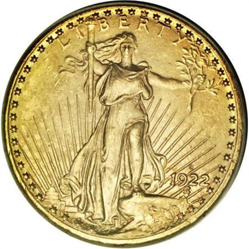 <B>1922-S $20 MS64 PCGS.</B></I> The 1922-S, with a mintage of 2.658 million pieces, suffered heavy meltings in the 1930s. Most survivors appear to be in the lower Mint State grades. This near-Gem displays peach-gold luster imbued with accents of mint-green. A well directed strike sharpens the design features, and a few minute contact marks define the grade.<BR><BR><B>Coin Engraver:</B> Augustus Saint-Gaudens<BR><BR><b>Shipping:</b> Coins & Currency (<a target="_blank" href="http://www.heritageauctions.com/common/shipping.php">view shipping information</a>)