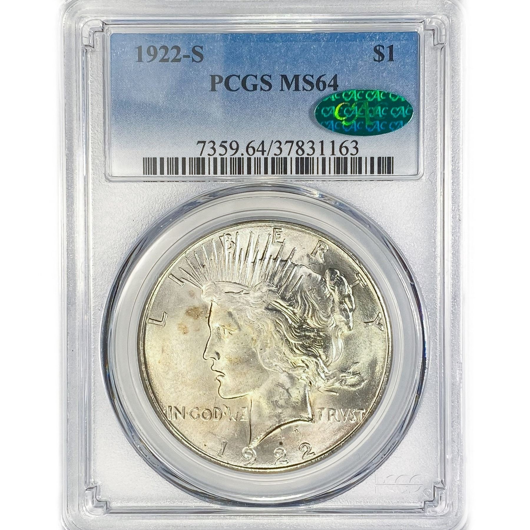 1922-S CAC Silver Peace Dollar PCGS MS64