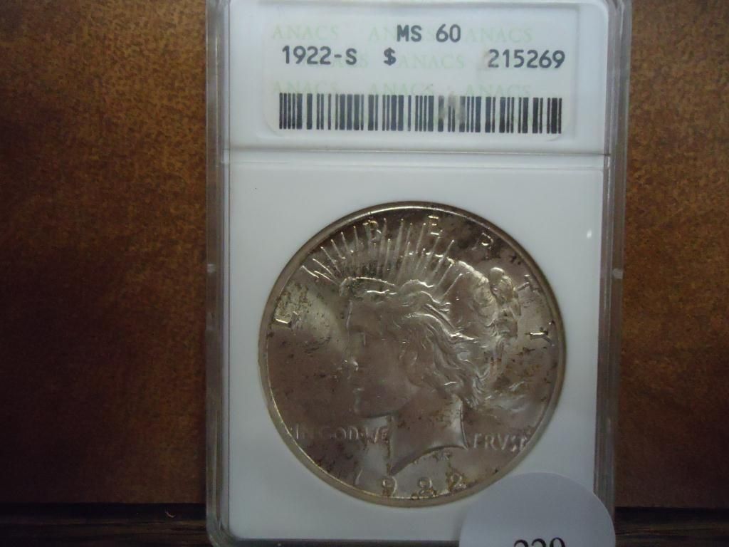 1922-S PEACE SILVER DOLLAR ANACS MS60