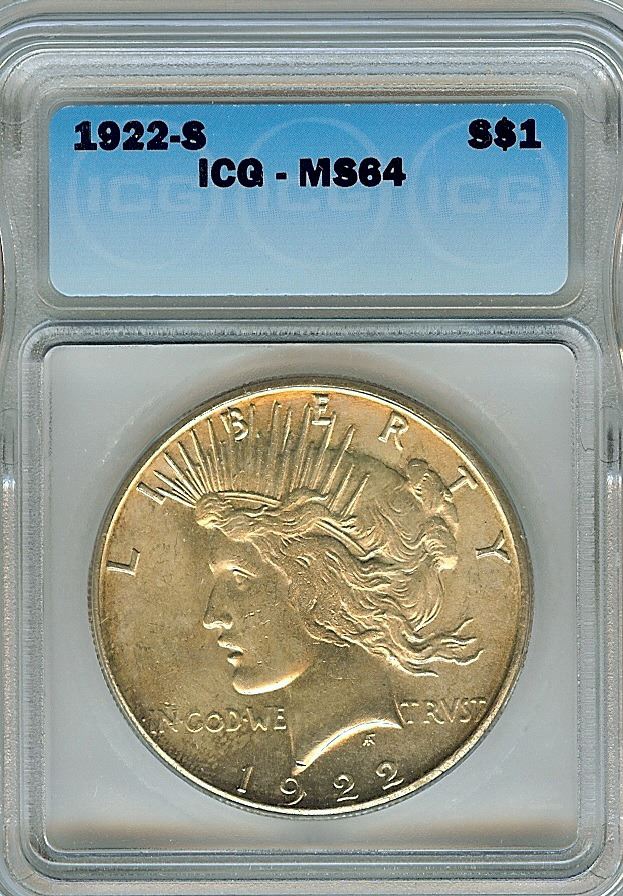 1922-S PEACE SILVER DOLLAR ICG MS64