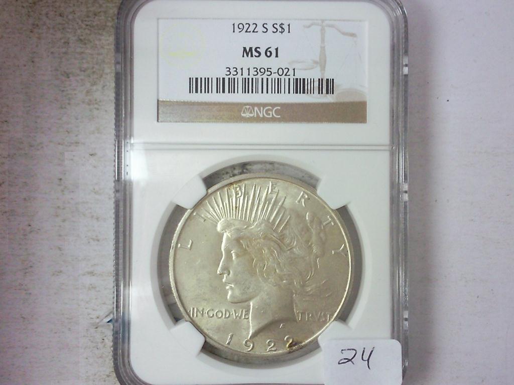 1922-S PEACE SILVER DOLLAR NGC MS61