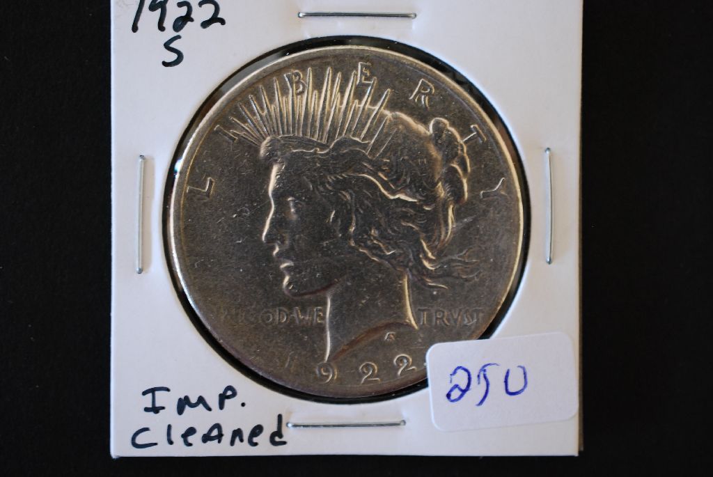 1922-S Peace $1; Imp. Cleaned; EST. $25-40