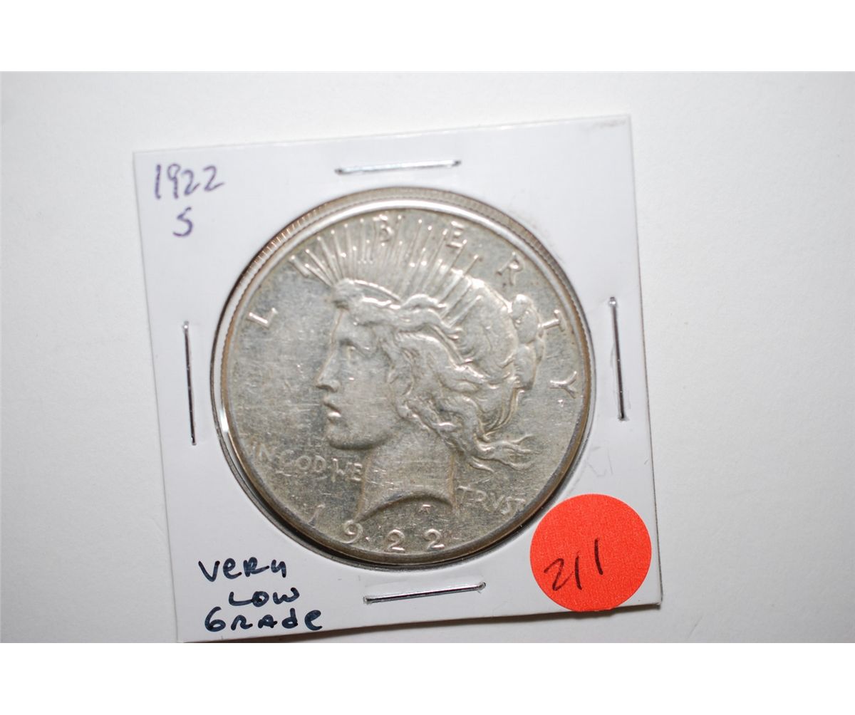 1922-S Peace $1; Very Low Grade; EST. $25-30