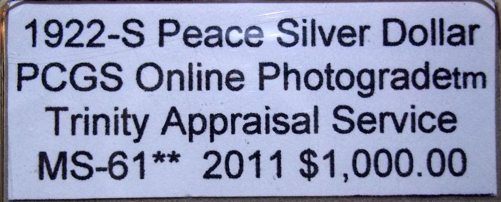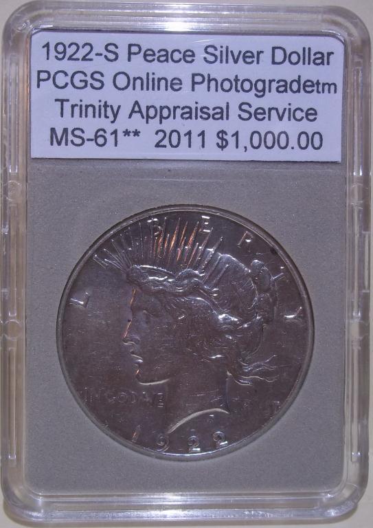 High Mint Mark,Great Luster. PCGS Online Photograde(tm) MS-61. Appraised at $1,000.00 by a Certified G.I.A. Appraiser from Trinity Appraisal Service, Control# F035370.