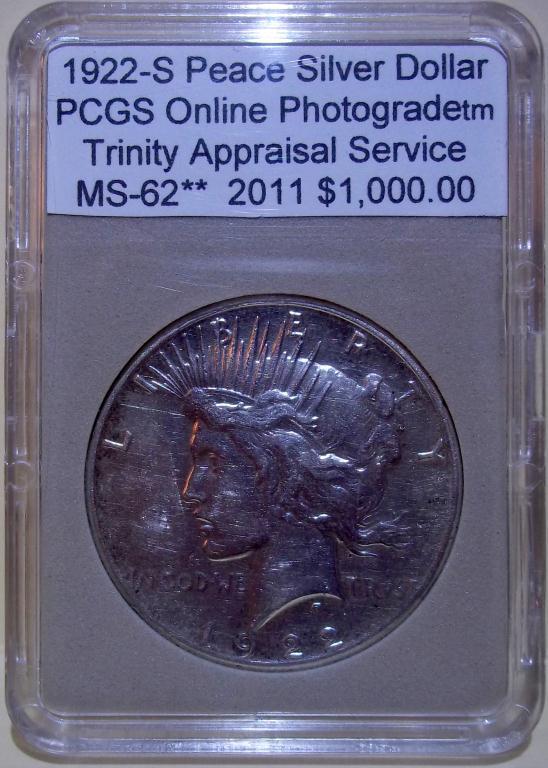 Weak Strike Reverse, Great Luster!! PCGS Online Photograde(tm) MS-62 Appraised at $1,000.00 by a Certified G.I.A. Appraiser from Trinity Appraisal Service, Control# F035377. INCLUDES APPRAISAL