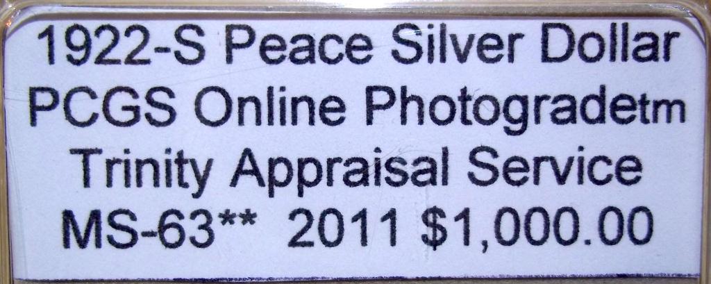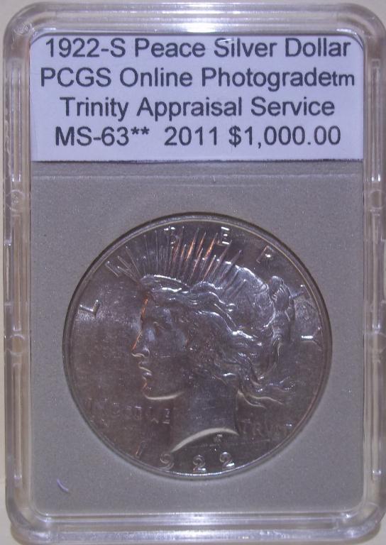 Weak Strike Reverse, Great Luster. PCGS Online Photograde(tm) MS-63!! Appraised at $1,000.00 by a Certified G.I.A. Appraiser from Trinity Appraisal Service, Control# F035371.