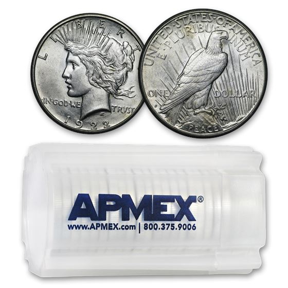 One piece 1922-S Peace Silver Dollars BU (20-Coin Roll)
