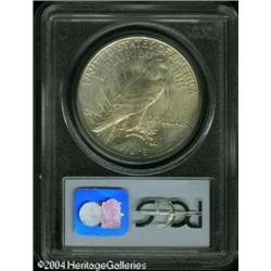 1922-S S$1 MS64 PCGS. Remarkably well struck with <B>1922-S S$1 MS64 PCGS.</B></I> Remarkably well struck with lovely lime-green, russet, and blue toning interspersed on the obverse and just a slight touch of color on the reverse. Lustrous. <BR><BR><B>Important notice:</B> Heritage usually auctions material at the rate of 200-250 lots per hour. On some occasions eBay Live bid software or the Internet may not be able to keep up with the pace of the auction. We recommend placing a realistic absentee bid now as insurance to avoid disappointment. Occasionally the auctioneer may eliminate or reject an eBay Live bid, and the auctioneer may also reopen a lot after the close of the eBay live bidding (usually because we missed an audience bid), and may reject your bid even if it shows you as the winning bidder. By bidding via eBay Live, you agree that Heritage may award the lot to another bidder at its sole discretion under the circumstances described above or any other reasonable circumstances. Since eBay bids are not shown to us until we open the lot on the floor, we treat those bids just like floor bids. In most cases the floor responds before the eBay bid is presented to us, due to Internet lag time, so for consistency we have made it a policy that floor bids are always considered first over tie eBay live bids. Also please note that all Heritage lots purchased through eBay Live carry a 20% Buyer's Premium. Please make sure you read the Terms and Conditions before you bid. This lot is being auctioned in conjunction with a live floor auction by Heritage Galleries & Auctioneers. All final auction and invoice information will be supplied by Heritage Galleries & Auctioneers, and all other information should be considered preliminary. Lot:7784