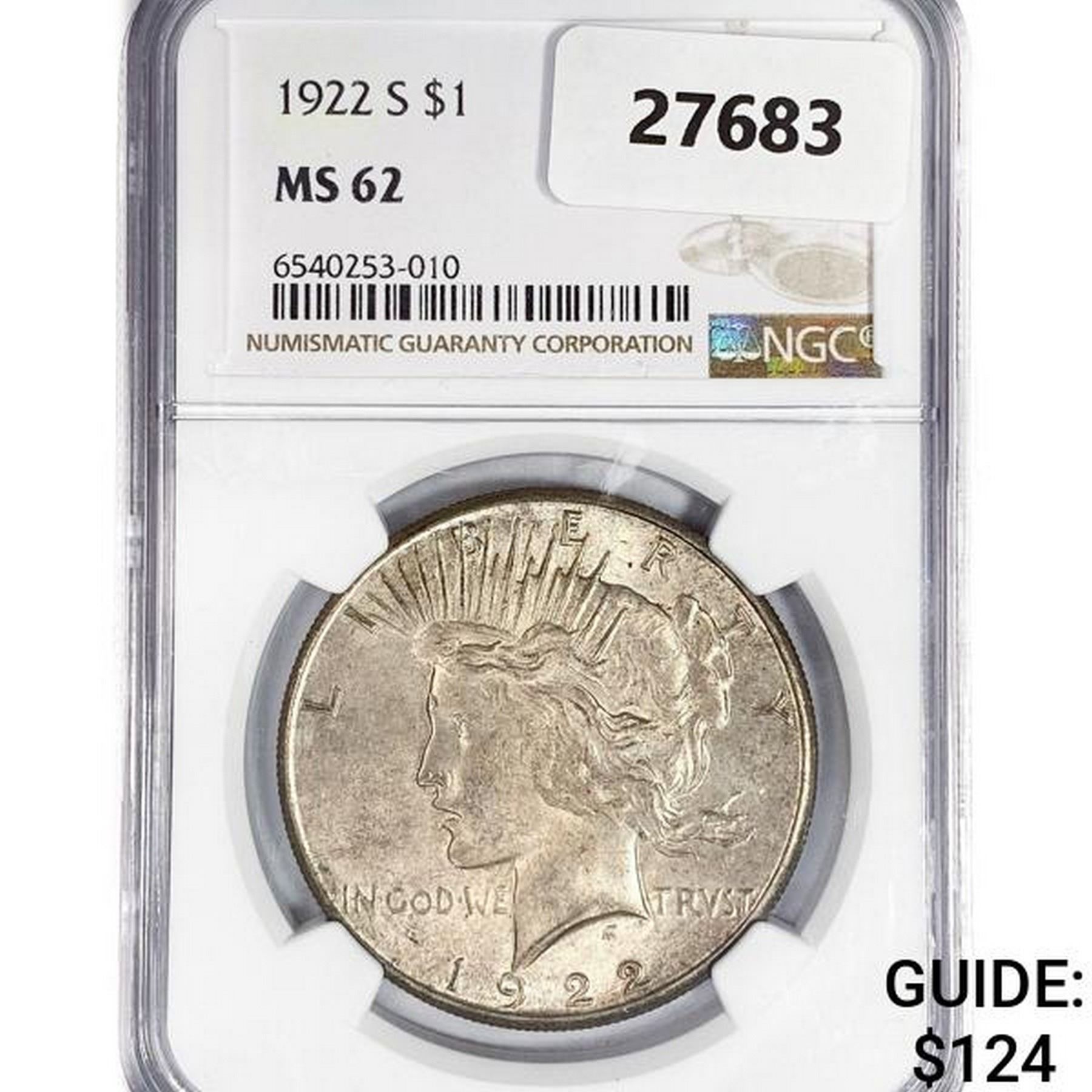 1922-S Silver Peace Dollar NGC MS62